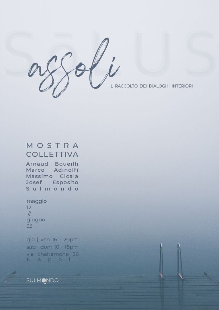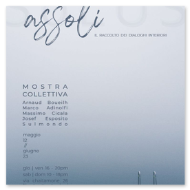 The artists Adinolfi and Cicala, Arnaud Boueilh, Josef Esposito, Sulmondo-Design, exhibit works expressing different sensibilities through installations, painting, sculpture, design.The “ASSOLI” exhibition aims to be a stimulating experience that invites visitors to a deeper contemplation and understanding of the complexities of solitude.