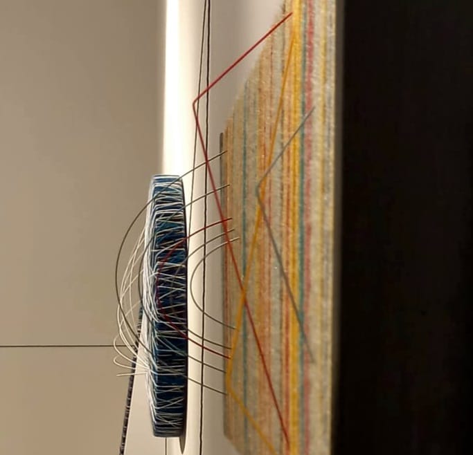 Mutamenti - 2023 - Mixed technique ( acrylic threads, mirrors, plastic inserts, on wood)