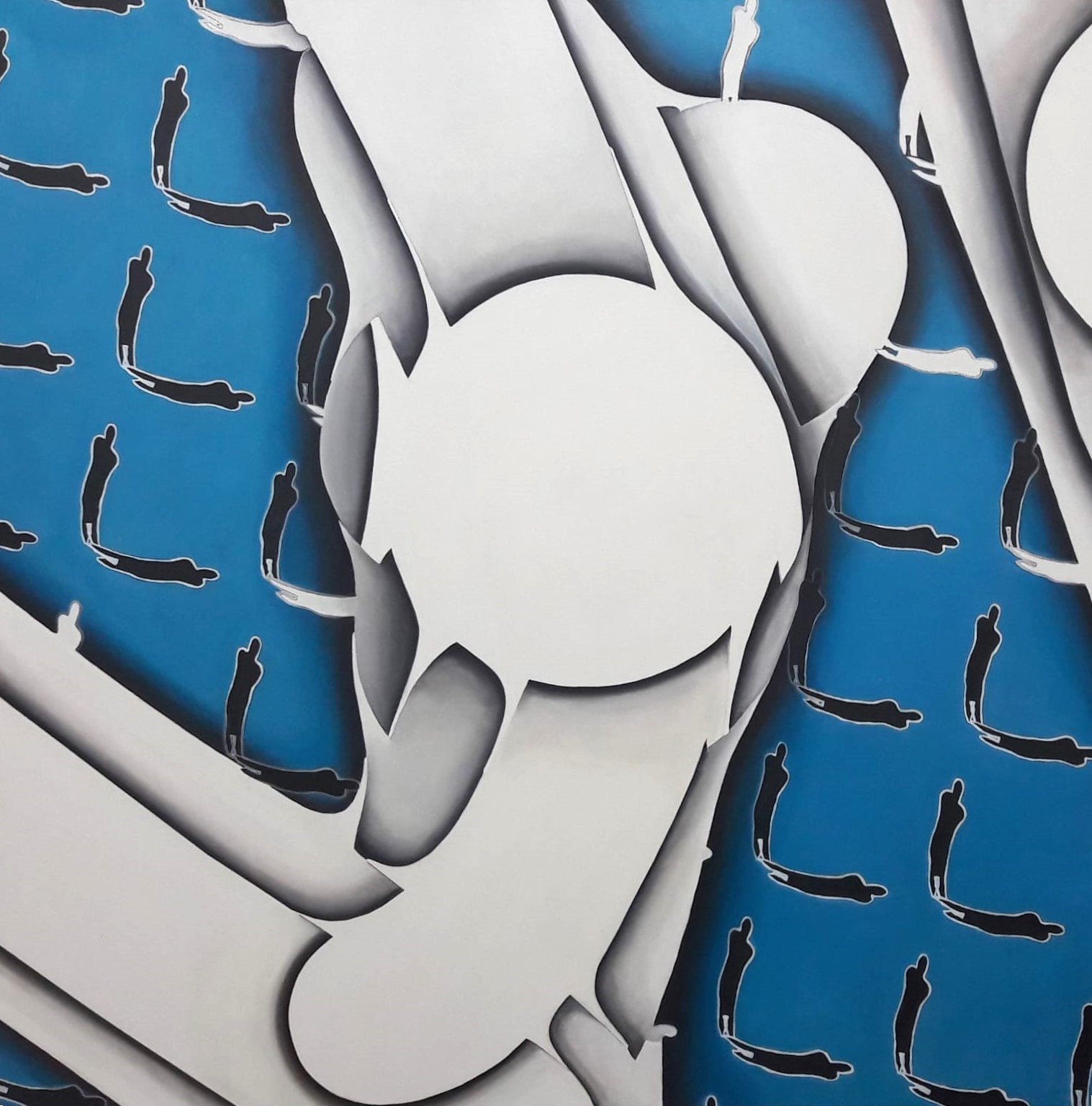 HombreS è un ciclo di opere centrato su una figura umana stilizzata, sempre accompagnata dalla propria ombra: una presenza costante che mette in discussione i confini tra individuo e riflesso, tra realtà e rappresentazione. Il titolo stesso – fusione tra hombres (uomini, in spagnolo) e ombre – evoca questa doppiezza visiva e concettuale.