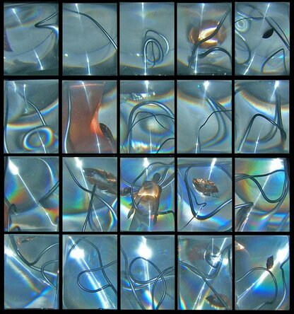 Tangle – 2005 – Installation – Variable dimensions (modular elements 27.5 x 21.3 x 14 cm) – Mixed media: glass, copper, mirrors, paint, magnifying lenses, cardboard – [More info]
