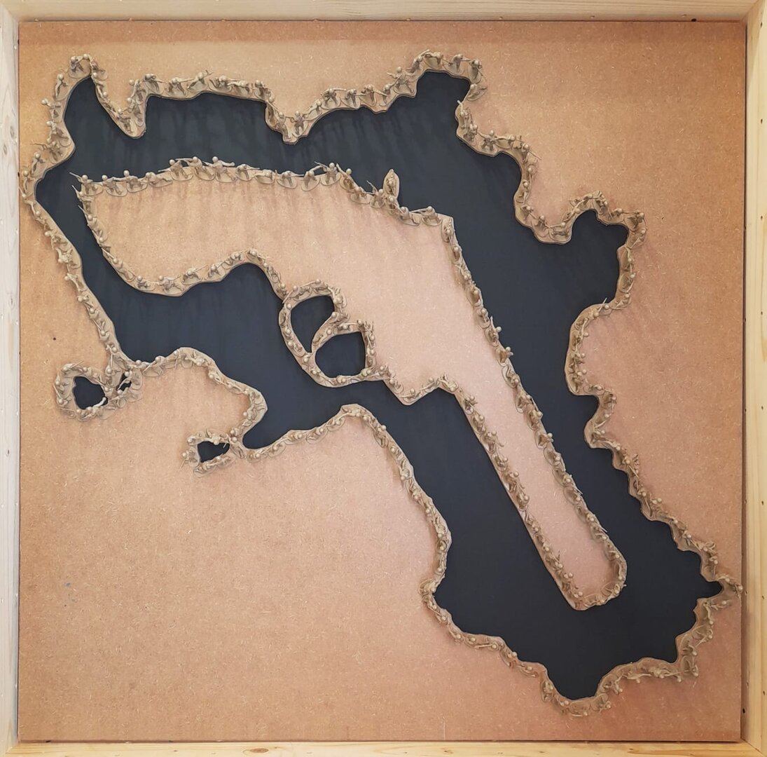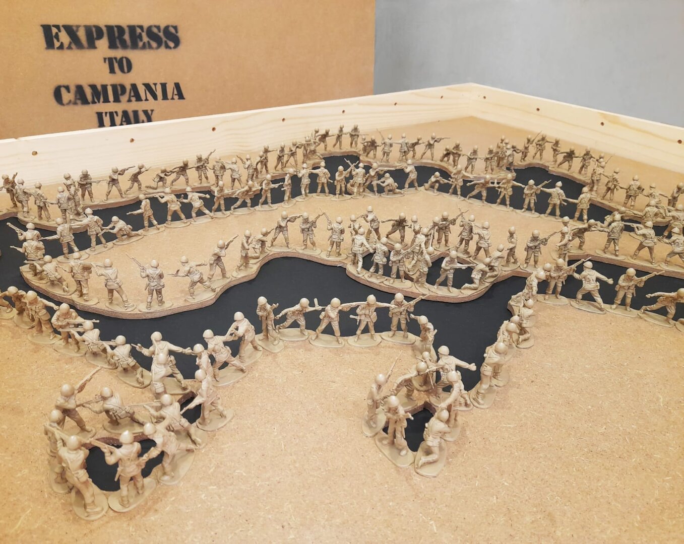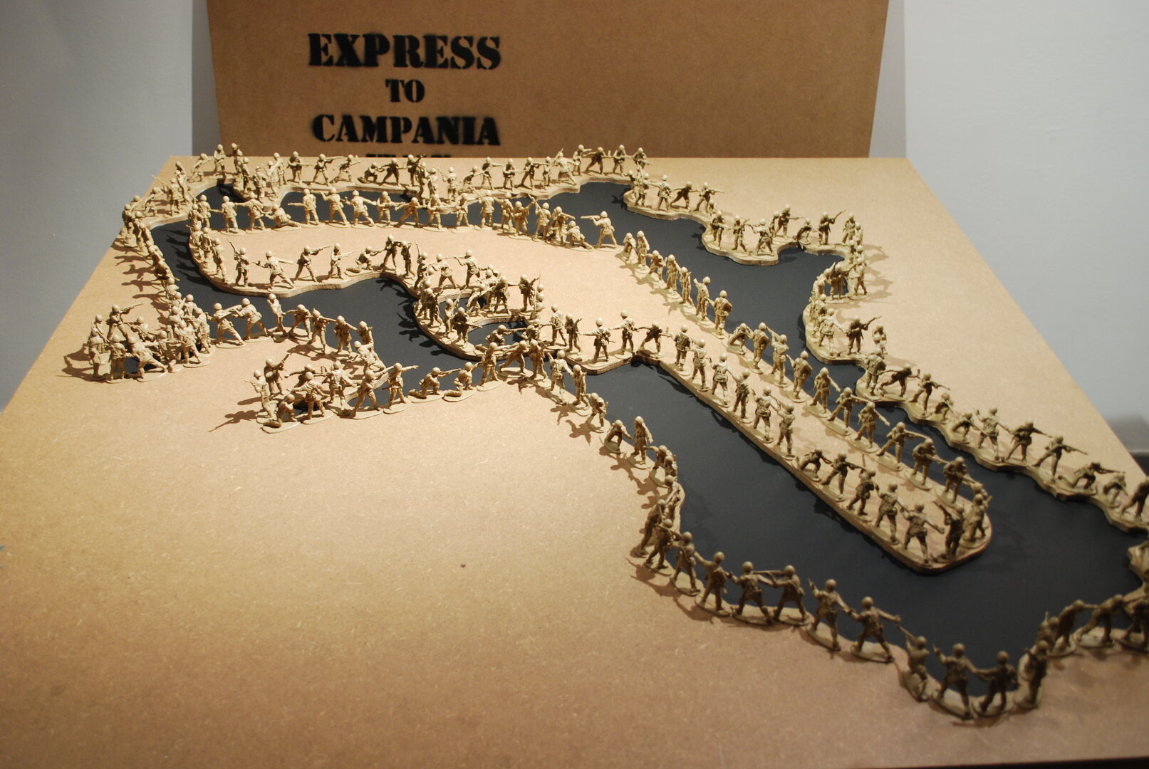 Installazione : acrilico e soldatini di plastica su mdf sagomato