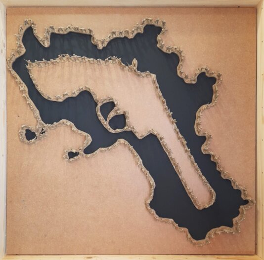 Ispirata alla stilizzazione della forma geografica della Campania, l’icona-logo che ha originato il ciclo MonoLogo si trasforma in volume nelle sculture installative a parete, realizzate a partire dal 2009 e tuttora prodotte in formati, colori e materiali sempre diversi.