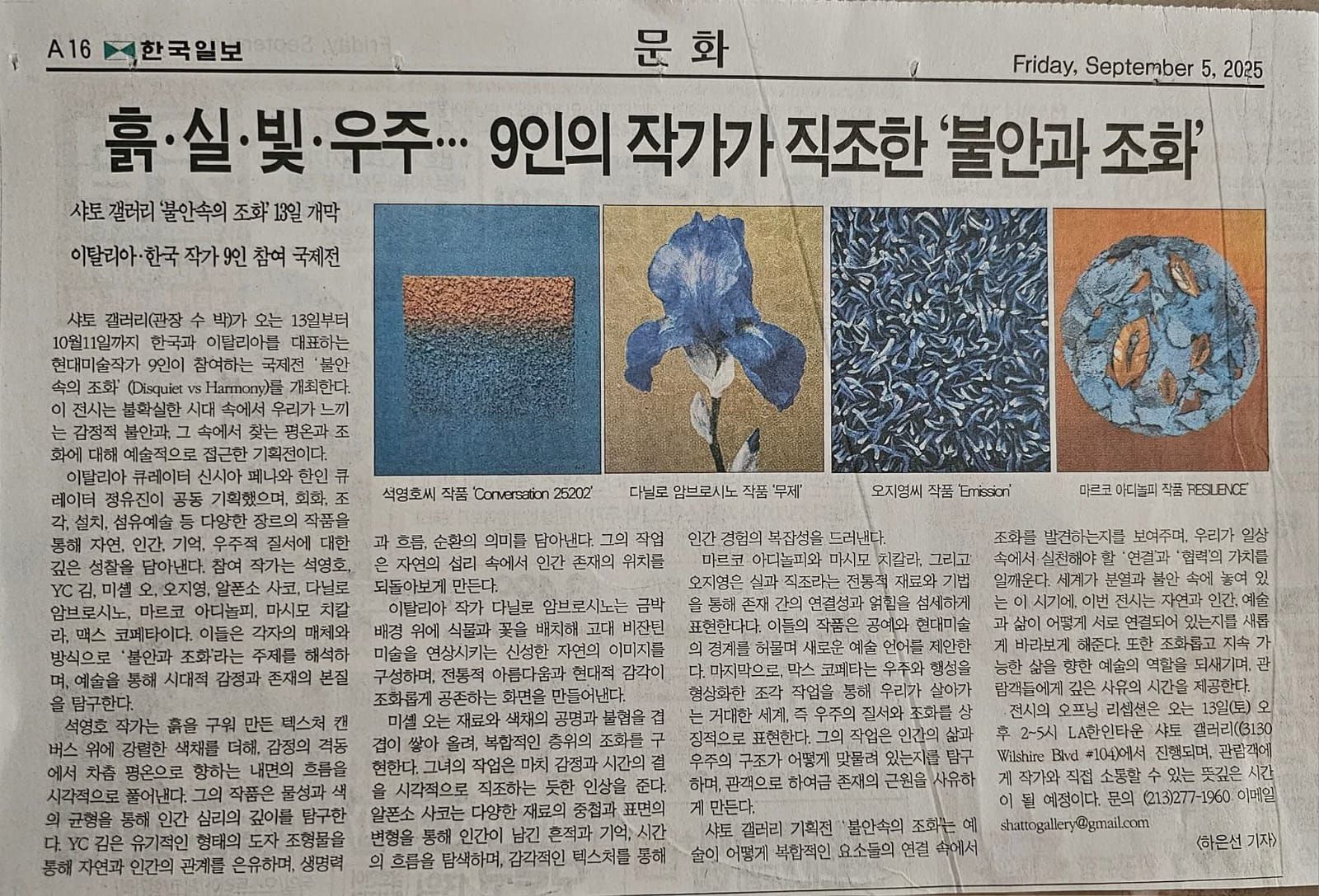 Ansia e armonia esplorate nell’arte contemporanea