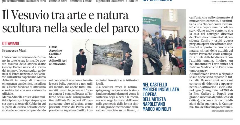 Parco del Vesuvio, inaugurata a Palazzo Medici di Ottaviano l'opera “La forma del tempo” di Marco Adinolfi