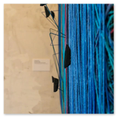 Mixed media (cotton ribbons, acrylic on aluminum inserts and wooden panels)