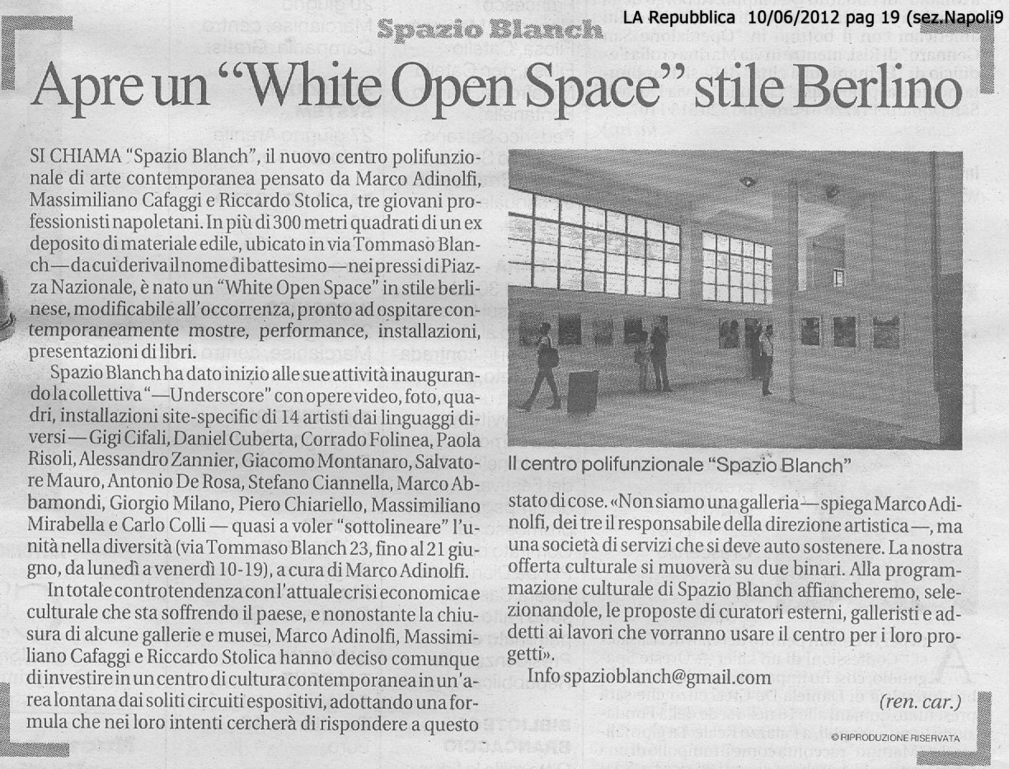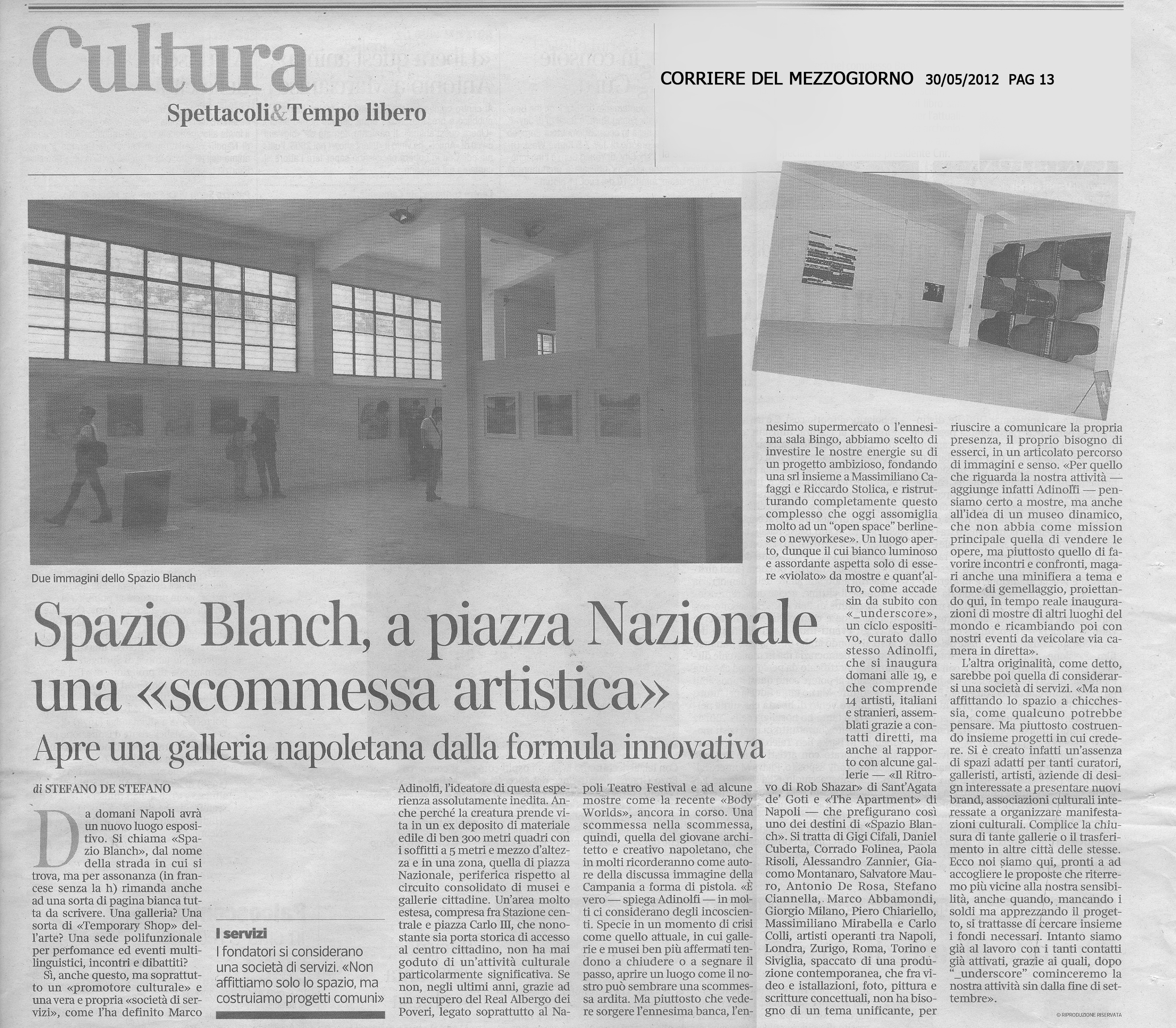03/06/2012 di Patrizia Giordano - link" La mostra UNDERSCORE per inaugurare SPAZIO BLANCH "